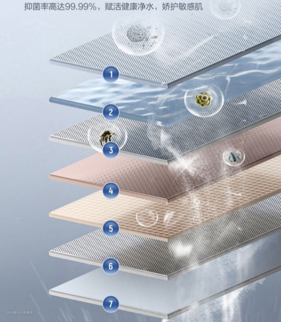 功能面板上有个“净化抑菌”功能,一键启动后,能够多重过滤掉泥沙、铁锈、胶体等杂质,深度净化水质,进出水路均采用的是抑菌材料,最重要的是抑菌率高达99.99%!