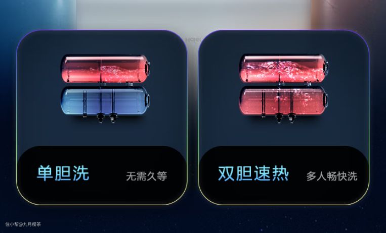 双胆可以实现一边洗一边交替加热,想洗多久就洗多久,不用担心热水量;