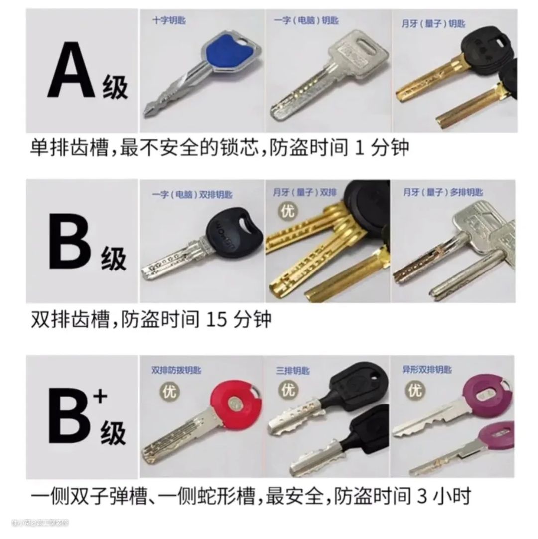 机械锁:机械锁属于被动防盗,按照国家标准要求,C级锁防技术开启时间要求在10分钟内不能打开,B级锁为5分钟,A级锁在1分钟。