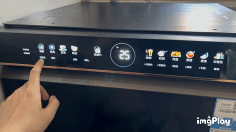 开机后,一整条全触摸晶彩屏科技感十足,清晰度和可视角度都很不错,不同的模式对应着不同的彩色图案,需要哪个模式点哪个,操作非常高效直观,老人家也能轻松掌握操作。