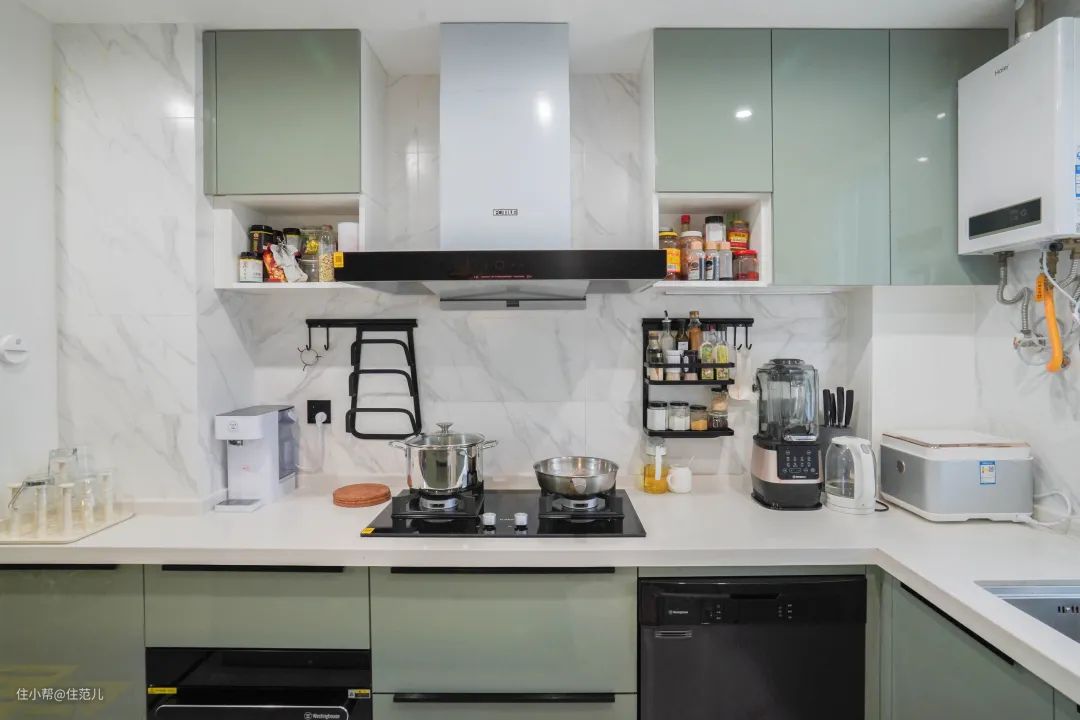 再搭配大单槽或者洗碗机,来不及收拾的锅碗瓢盆往里一堆,也不影响整洁。