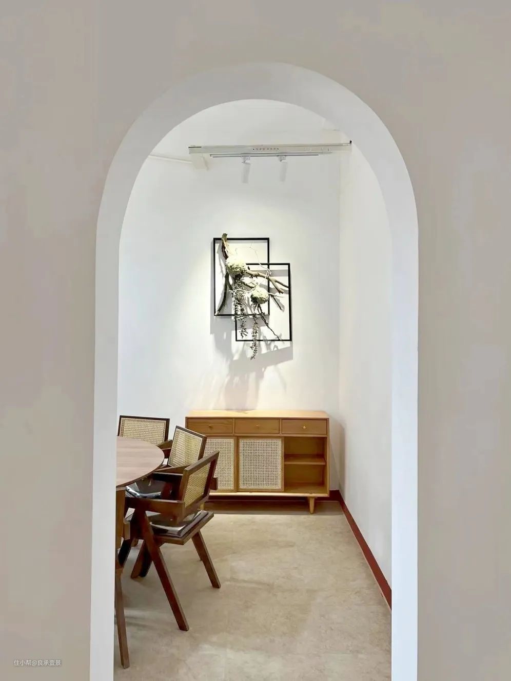 我们在房屋改造时常常在苦恼,一些梁柱砸又砸不得,放着又太突兀。不如转念一想,将它融合到拱形门的设计当中,通过弧形线条弱化墙体边角的尖锐感,将空间氛围柔化调和,让局促有限的空间结构得到优化。