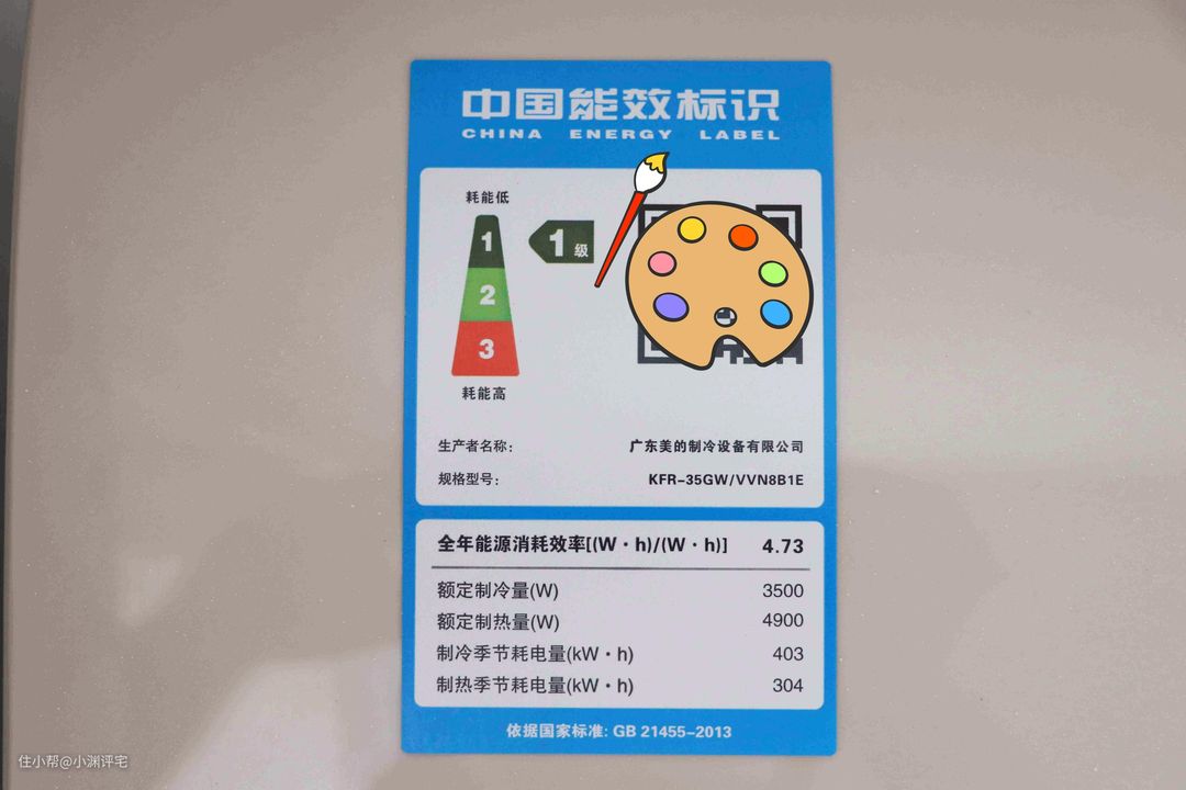 空调室内机的正面会贴着“中国能效标识”,上面把空调的能效分成了1~5级。
