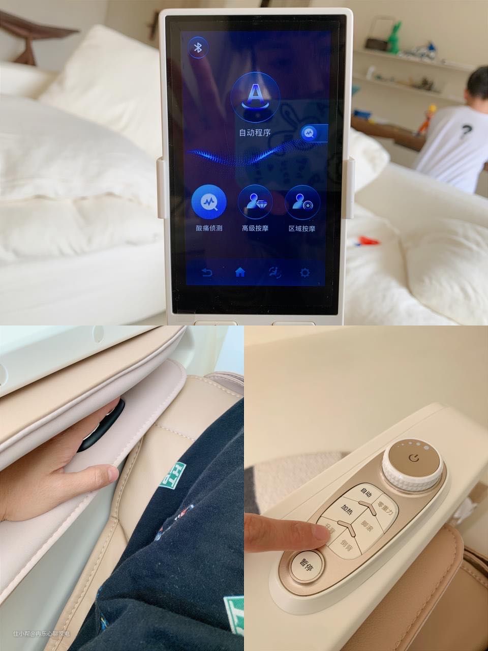 操控方式包括液晶触控大屏+手机APP操控+扶手快捷键+智能语音四种,既能满足年轻人追求科技趣味的需求,也能满足老年人简单操控的需求,同时还有快捷操作按键,兼顾不同人群,考虑很周到。