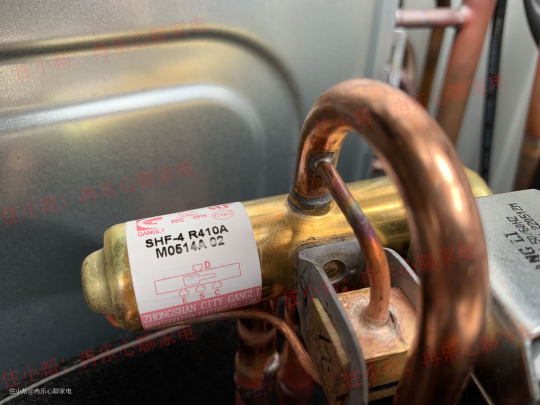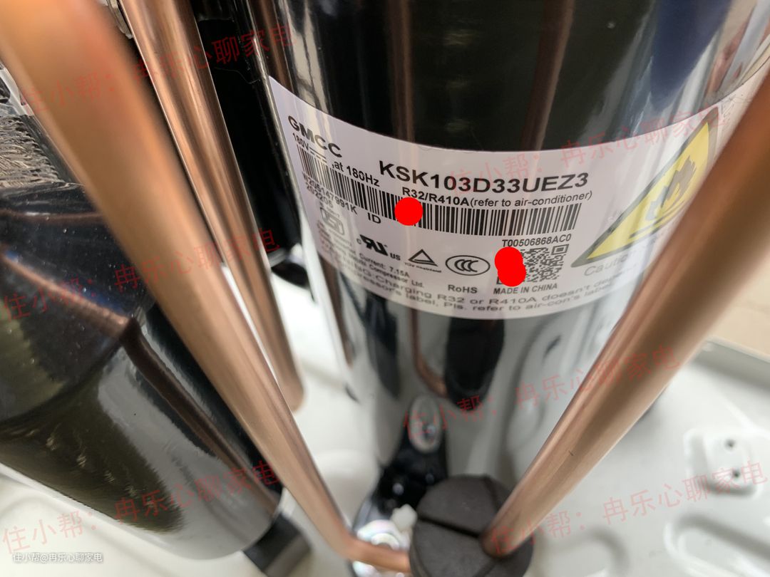 拆开保温棉可以看到上边印着“GMCC”是美的自己的美芝压缩机,型号为“KSK103D33UEZ3”排量为10.3cc,排量较大。