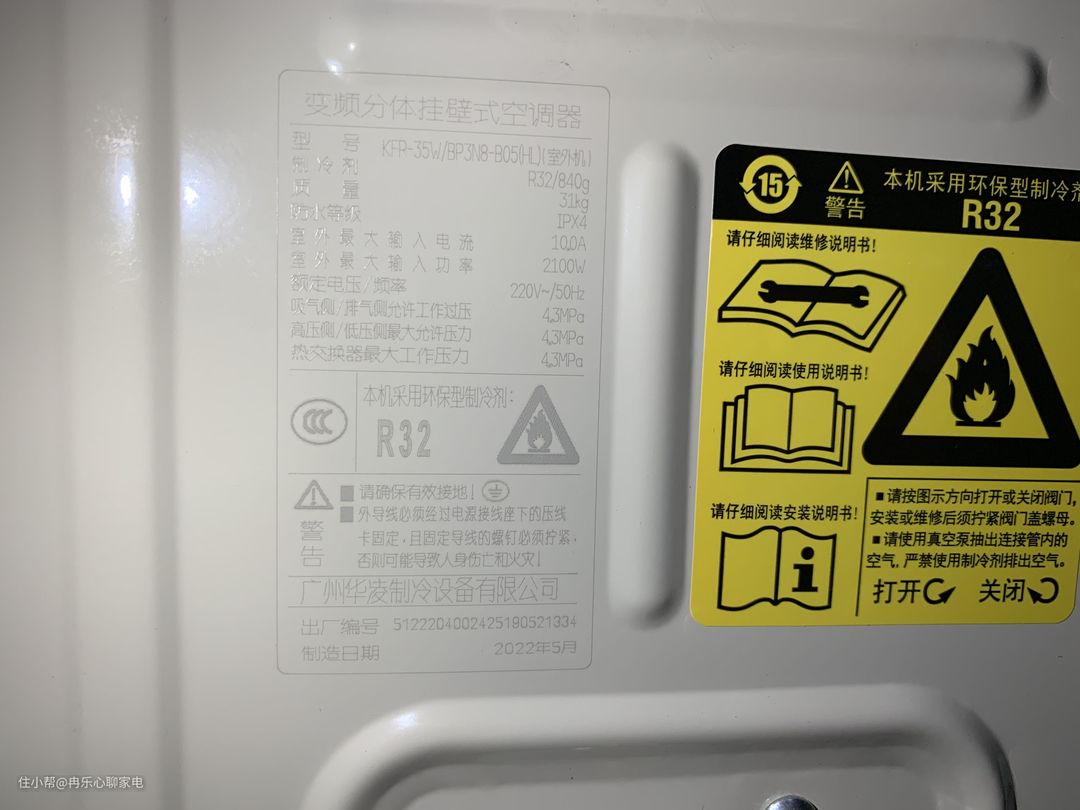 先看铭牌,铭牌信息主要看的是生产日期、冷媒类型、冷媒充注量。