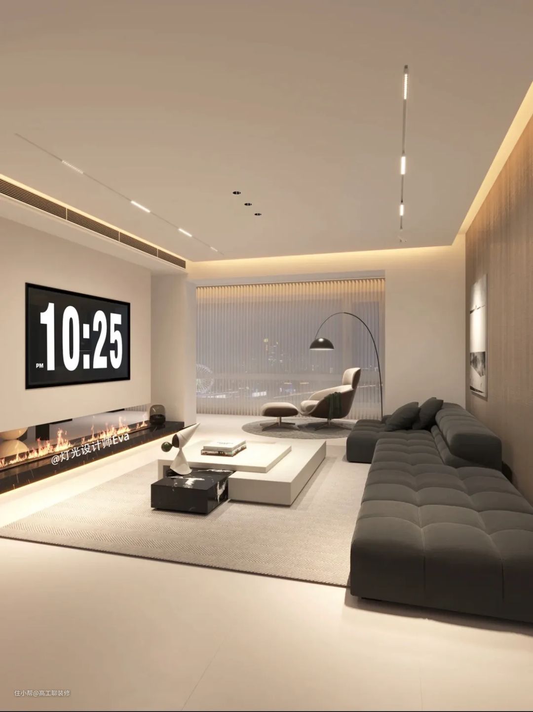 柔光砖,柔光瓷砖可以说是无主灯设计的标配,晚上开灯整体室内效果高级感满满,而且也不会存在容易发光刺眼的不好现象。