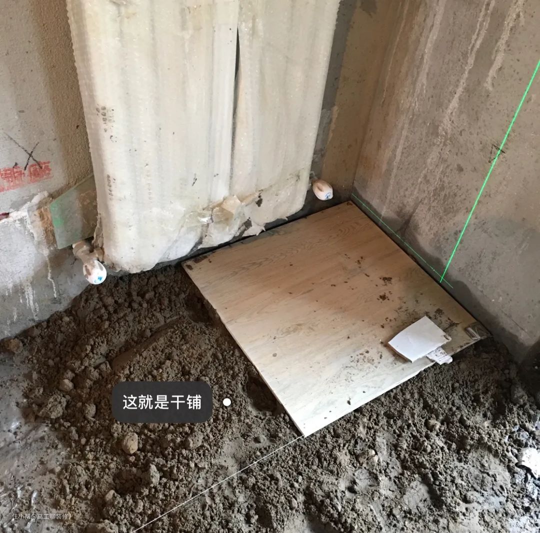 干铺:主要是地面的瓷砖,使用干铺对地面的平整度要求非常高,还能减少瓷砖空鼓率,但是比较考验瓦工师傅的手艺。