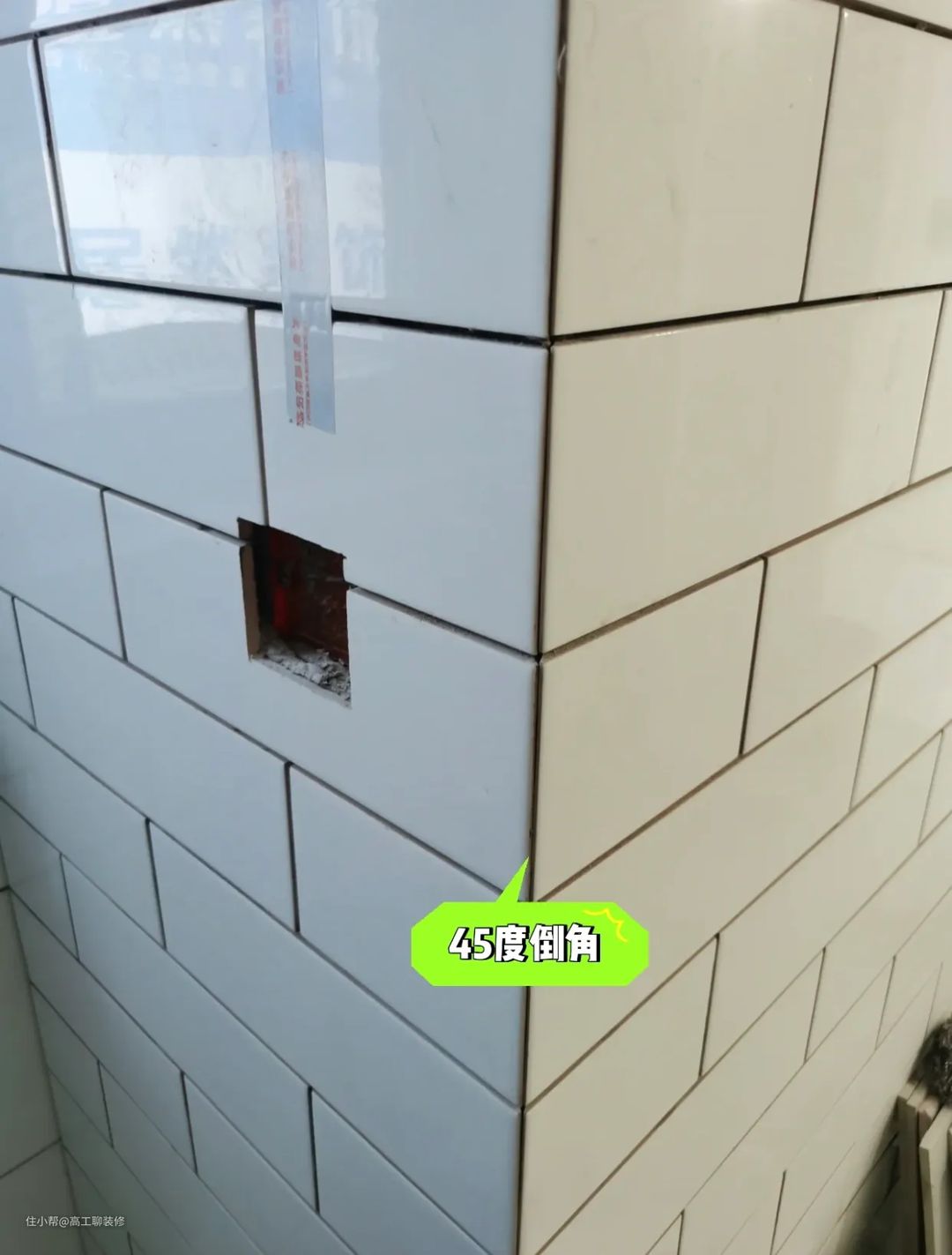 所以如果不懂的粉丝朋友,建议在铺贴瓷砖之前,先要和完工师傅沟通好,不然有很多为了图省事的瓦工师傅,直接给你用护角线条把凸出来的角做上护角条,这样不但遮挡了墙角的不平整,而且也渐变了提升了装修成本。