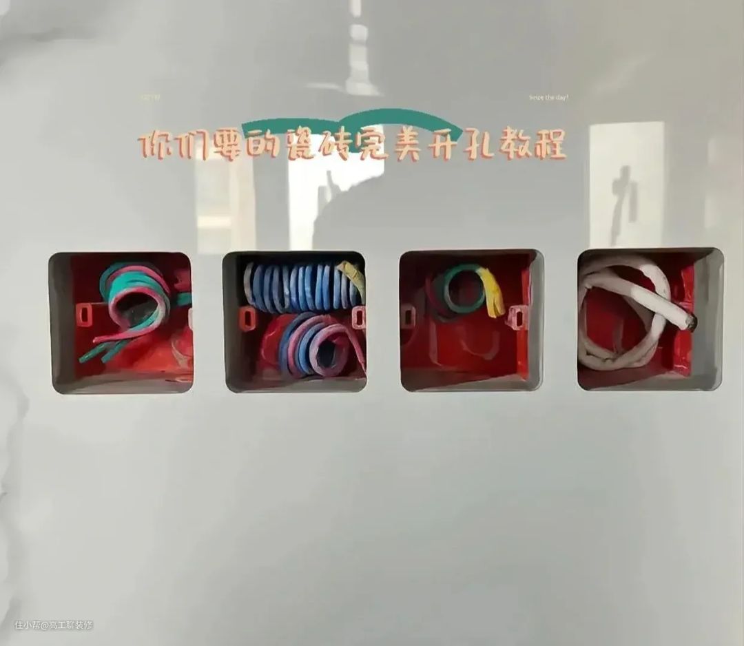 做专业的事情就需要专业的工具,瓷砖铺贴时,特别是厨房、卫生间还有阳台,难免会在瓷砖表面上开孔,所以叮嘱瓦工师傅开孔时,一定要使用专业的开孔器,这样开出来的孔,既统一也比较美观。