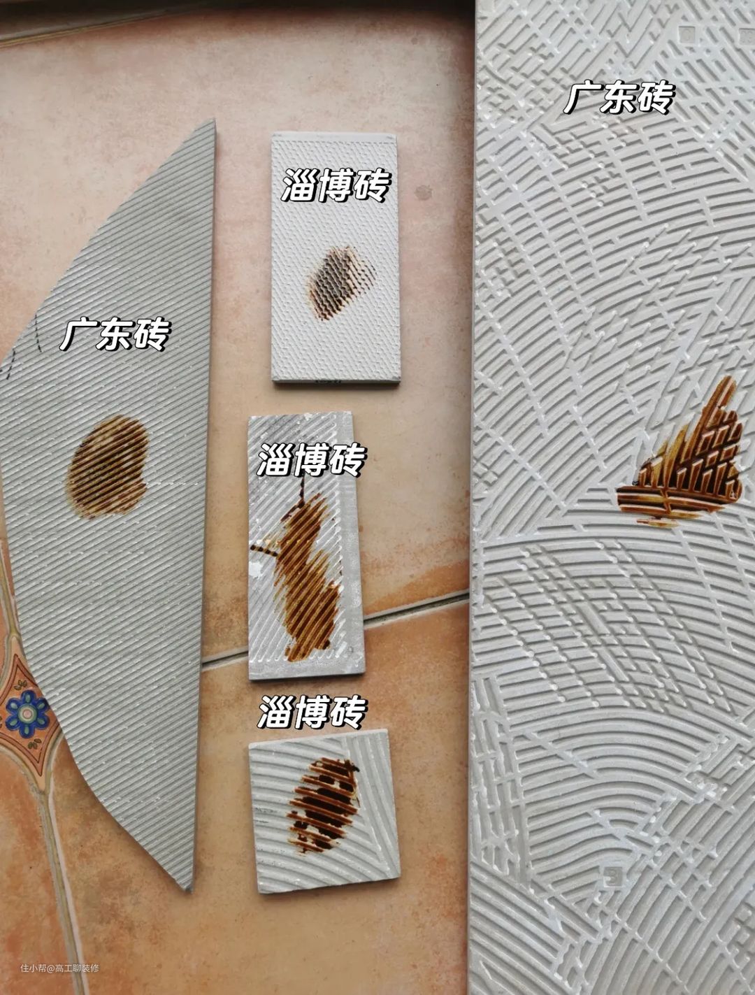 瓷砖建议铺贴广东产地的,因为广东产地主要是生产瓷砖,所以它的内控标准非常高,还有胚体和釉面平整度也比较好,而当地的瓷砖,只是为了生产走量,但是生产过程中的每个细节是不完善甚至不成熟,所以导致瓷砖的质量存在一定的隐患。