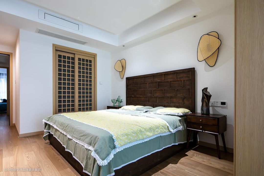 墙面的挂件和床头柜的工艺品让空间多了一分艺术感。