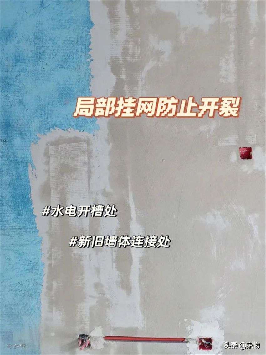 全屋挂网倒不必,但要在易开裂的地方挂网,比如新建墙体、开槽墙体、新老墙的结合处以及部分轻质墙等区域,挂网是起到预防作用,避免日后出意外。