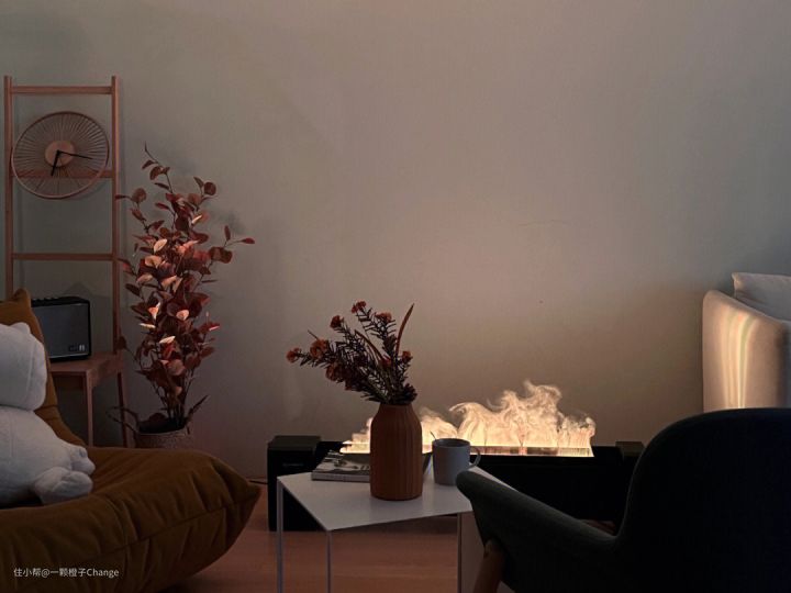 主打“冬日焰火”的标签,相比其他踢脚线取暖器要更具特色不少,内置80cm的加湿出雾口,加湿量40ml/h,配合LED火焰光源可谓是相当逼真,昏暗环境下氛围感满满。