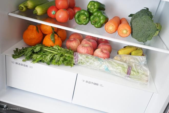 并且相比普通冰箱,这种大开间设计,放西芹、莴笋、黄瓜、丝瓜之类的长度比较长的菜也更为方便,长度近70cm也能直接横放进去冷藏了,不需要再切短存放,而且这样的整体放置也更有利于保鲜。