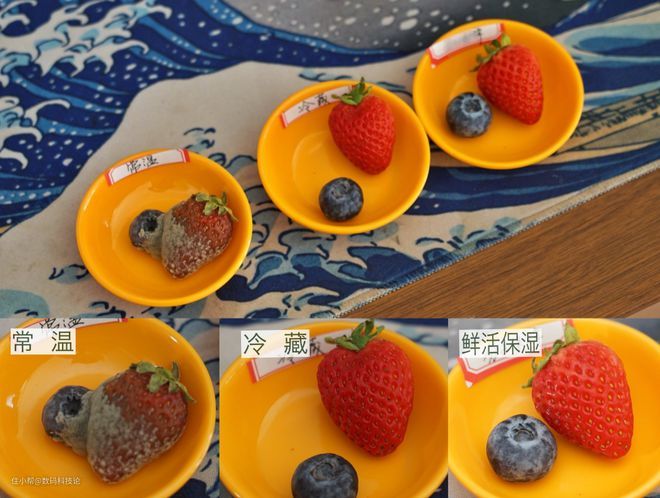 这个功能我以前专门用容易腐烂的草莓和蓝莓做了测试,存放五天后取出对比发现,室内常温下的果盘中蓝莓已经烂了一半,草莓也失去了光泽;而在冰箱冷藏普通冷的果盘,完全没有烂果的情况;在鲜活保湿舱保存的,外观来看与刚买回来的新鲜的一样,保存的会更好。