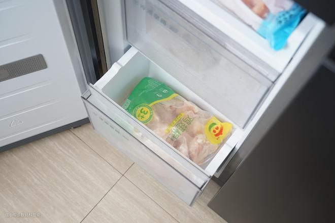 从实际存储看,冷冻室最小的抽屉大约可以存放6斤的鸡翅,一周的肉食有保障。