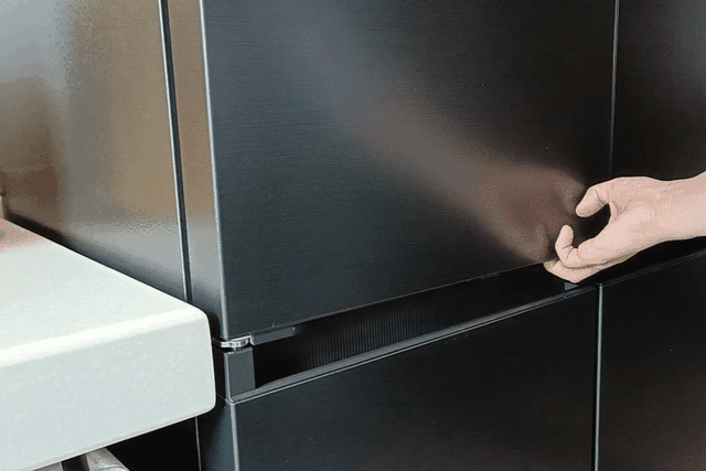 TCL超薄零嵌冰箱T9的门采用了完全的隐形把手设计,完全不用担心门把手勾挂围裙、衣服等导致手中盘子掉落等问题。并且冰箱门都采用了平稳嵌入式铰链,只要略微左右空一点点小缝隙(左右预留0.4cm嵌入),开门就完全不受限制,90度开门顺畅自如,贴着墙或者橱柜开关门也不用担心会磕碰墙壁或者橱柜壁。