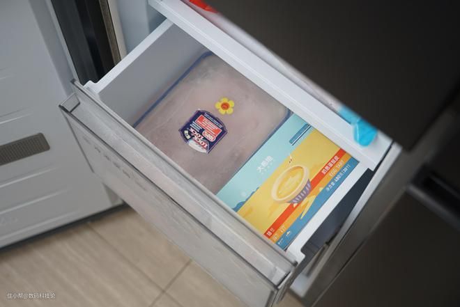 至于变温区,主要是最下层的抽屉空间更大一点,其他差不多。我主要用来软冷冻手抓饼、速冻饺子、速冻馄炖之类的,一是早上做快餐更方便,二是变温室保存温度在软冷冻的情况下,也不用担心把面食冻裂了。