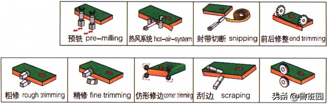 封边带切断和前后修整单元可以保证封边带的长度恰好等于板件的长度,而粗修和精修单元则将封边带在宽度上的余量剔除,保证封边带的宽度与板件厚度一致。