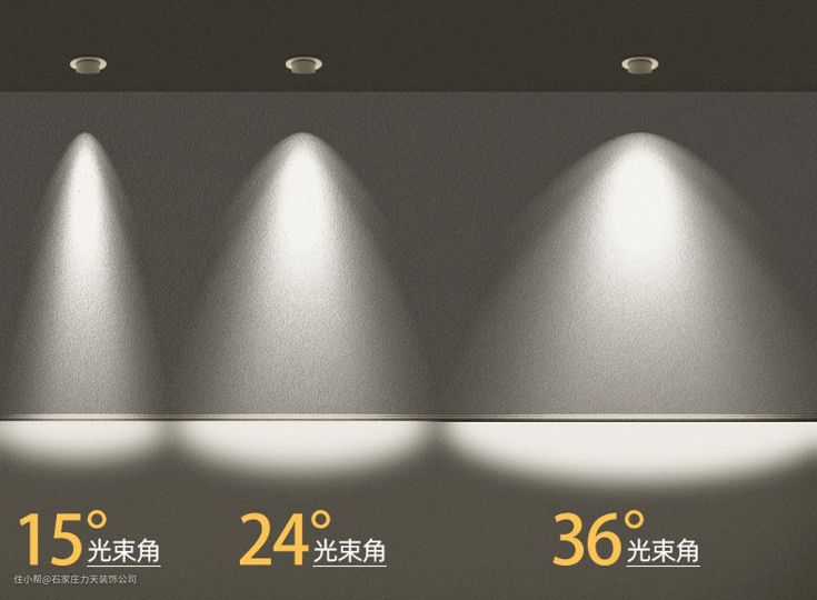 光束角是指光束一定强度范围边界所形成的夹角。同一个光源,光束角越大,出来的光斑越柔和,光束角越小,出来的光斑越生硬。筒灯没有光束角的选择,呈现光斑效果。