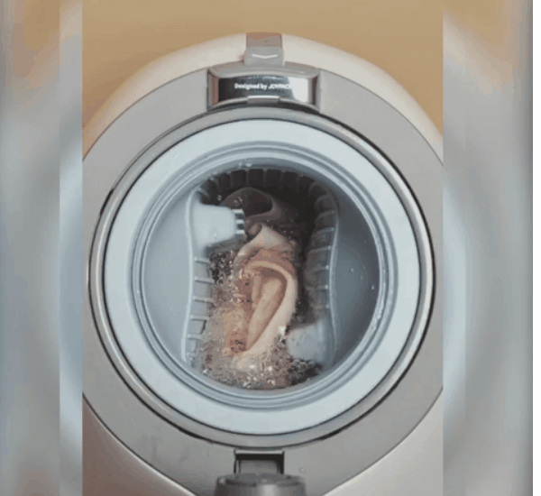 觉飞的另外一大特点就是洗衣机可以仿人手揉搓,就是“softscrub仿手搓专利技术“是让内衣裤或袜子在相对小的腔体内,被洗衣袋内壁上的两个小抓手筋条反复摩擦+翻滚,模拟手来回搓动的动作,对,就是硅胶内袋壁上的凸起洗的那2个小爪爪!有了它,相当于全程2160次环动滚揉,相当于手搓18分钟!!!