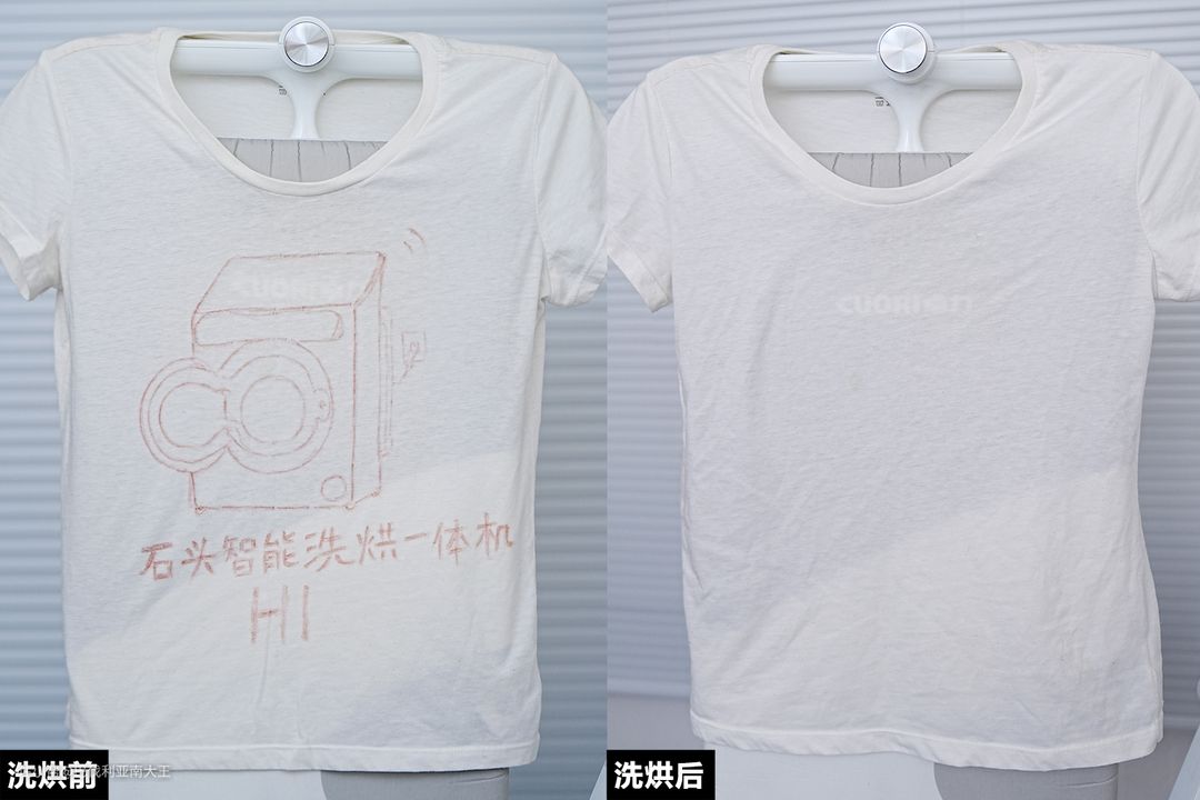 专业羊毛洗烘模式下,石头H1的温度更低,大概37度左右,更加护衣。打开舱门后我发现它的脱水度和平整度,达到了一个很好的平衡,悬挂起来完全没有任何缩水变形现象。