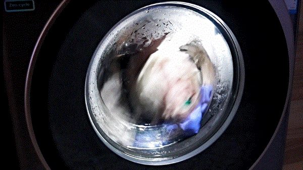 动图可以看到,在12KG的大空间里,衣物正反转,摔打的非常彻底,洗衣效果自然更好。
