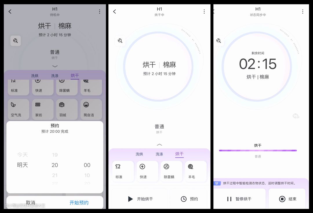 其中远程一键洗衣功能我最喜欢。下班前开始洗,回家刚好烘干,很是方便!而且用APP设定好后,洗衣机接受反馈速度也很快,几乎没有延迟。