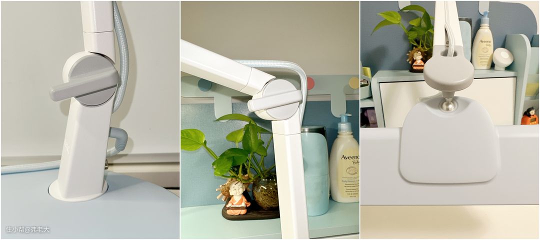 底座+灯臂双轴旋钮+球状关节的调节系统,能够实现纵向、横向和万向角度的多维精细调节。