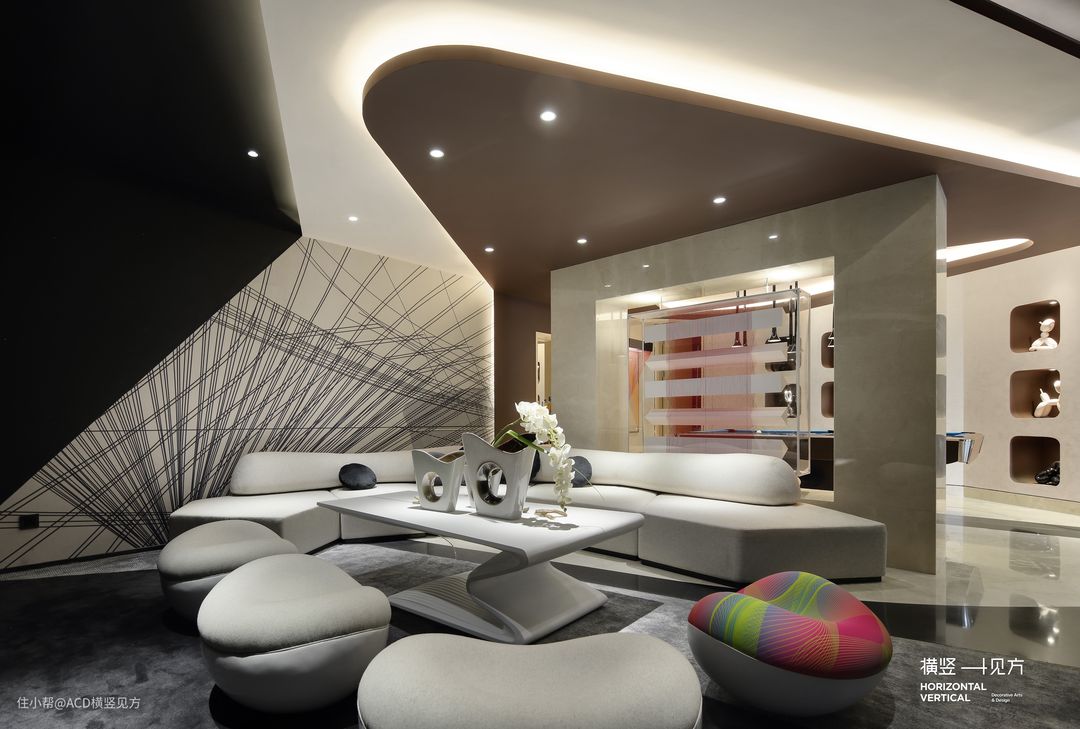 基于本案例户型为三层+地下室的别墅, 在宽敞的空间内,咱们可以借助软装搭配使得空间最大化利用。在整个休闲室通铺地毯,高端大气上档次。