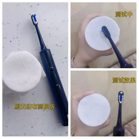 为了测试Addis伯爵在刷牙时的磨损效果,我用电动牙刷的美白模式刷无纺布,清洁时间为30秒。