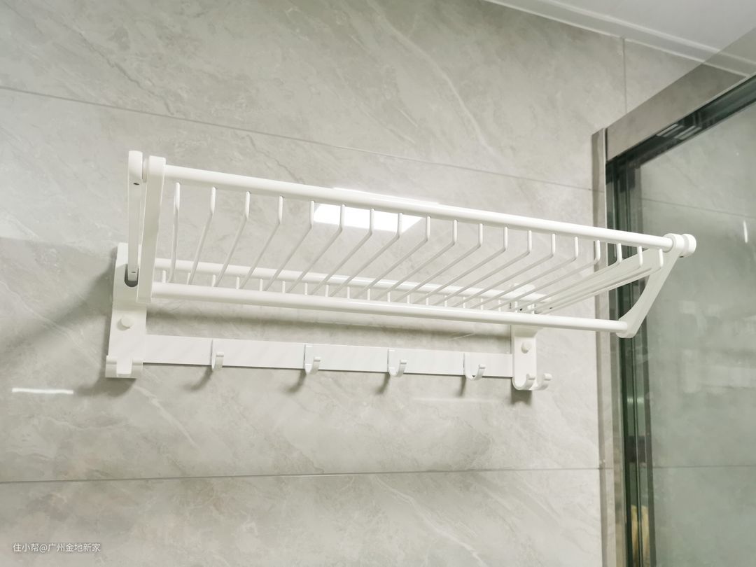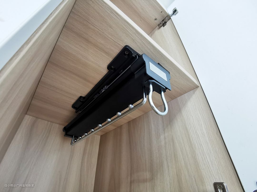 卧室的衣橱因为内深比较浅,所以选用了可伸缩的挂衣器,衣服悬挂时也能避免皱巴巴的问题出现。
