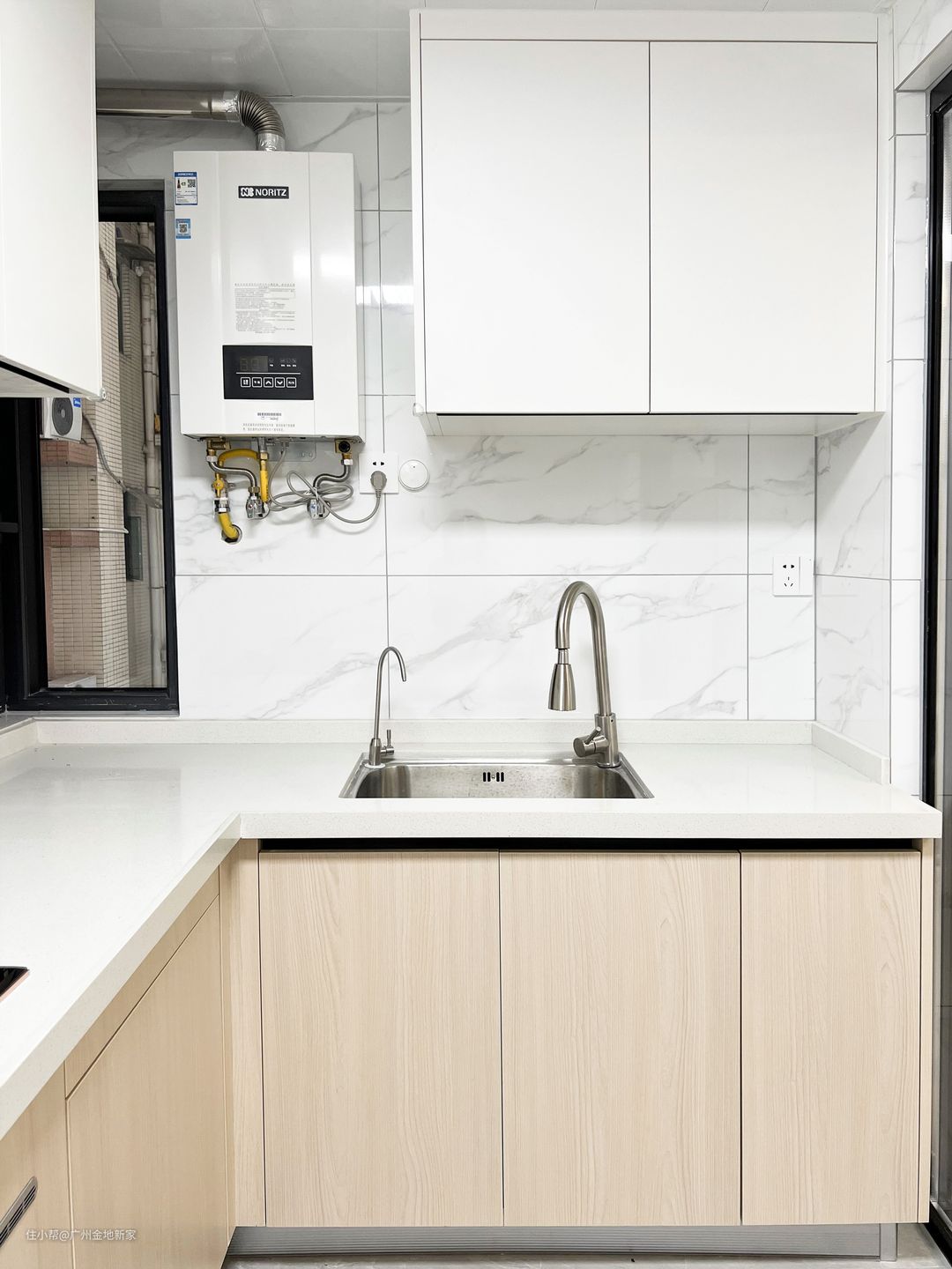 厨房所有的插座都做成了开关式,省电又能减缓家电插头的磨损,台面靠墙处做后挡水条,可以防止台面积水流向墙角,也填补了台面和墙面的空隙,避免墙体受潮发霉或者柜体受潮。其实就是相当于封住了卫生死角,清洁工作做起来方便很多~✔