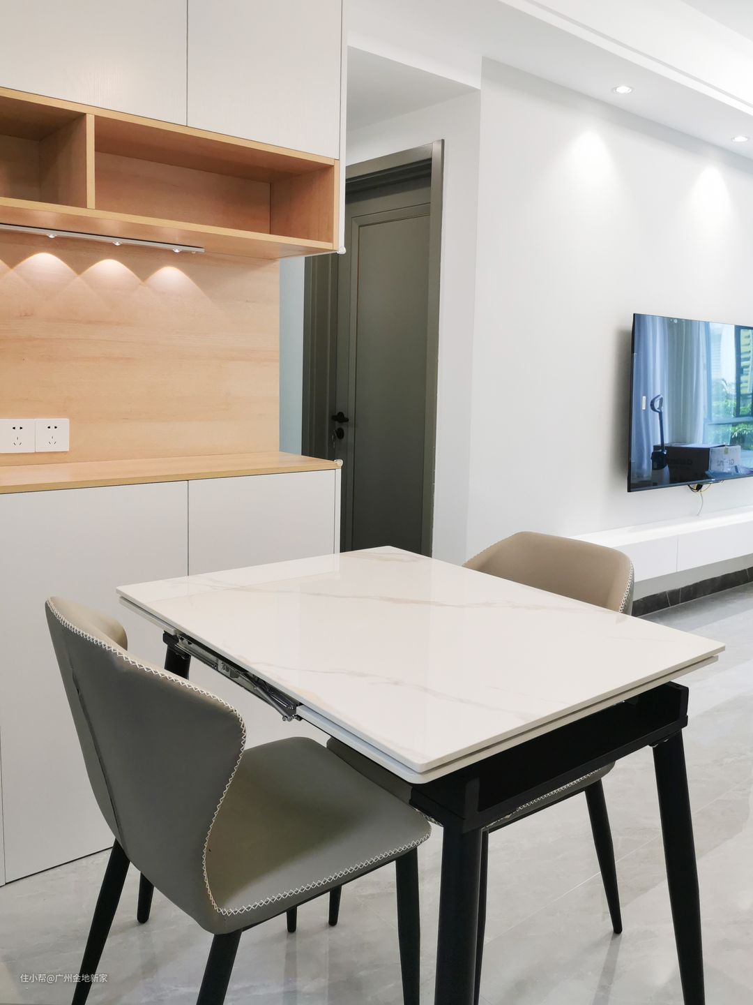 做了一个带伸缩功能的餐桌,家里有多朋友或是父母要来家里吃饭的时候,只需要把延展面抽拉出来即可满足多人用餐的场景需求,平时收起来也不占空间,很适用于小户型。
