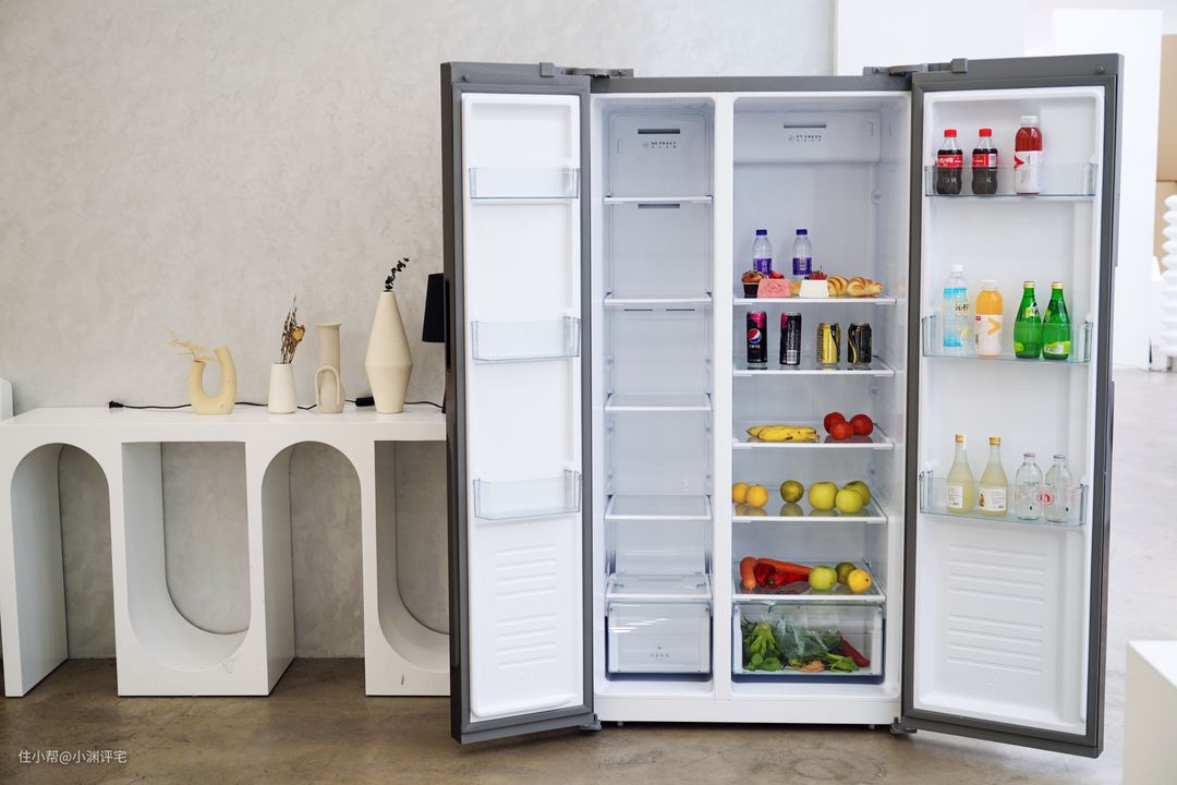 前面说了,对开门冰箱冷藏室和冷冻室之间的那道隔断比较厚。因此相同尺寸下,对开门冰箱的容量较小;相同容量下,对开门的冰箱尺寸更大。