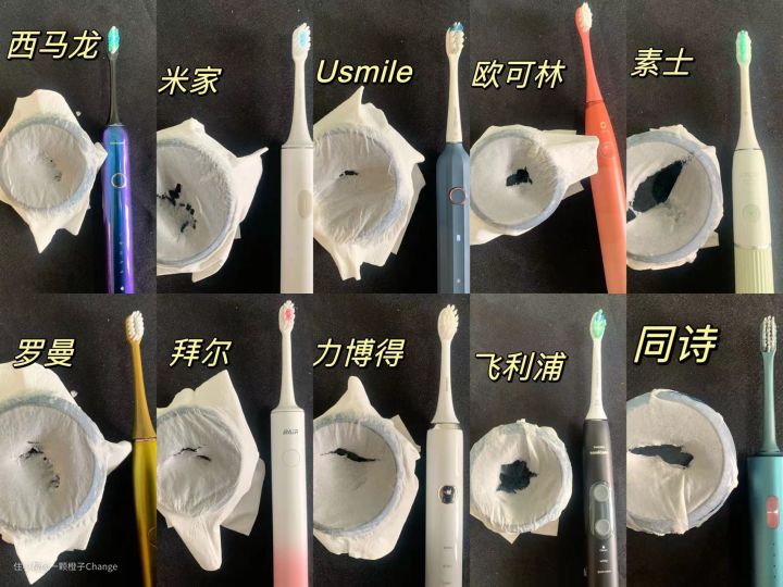 下面是电动牙刷磨圆率测评的结果。
