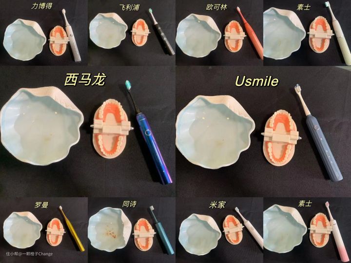 但是使用的过程中可以感受飞利浦利用剧烈的震感+偏硬刷毛来完成全面清洁同样容易加重牙龈磨损,而罗曼、西马龙、Usmile清洁相对来说比较稳定。摆幅稳定均匀,几款综合作用下口腔得到了深度清洁同时使用起来温和舒适。