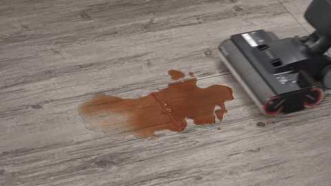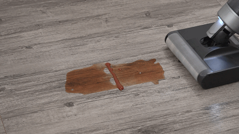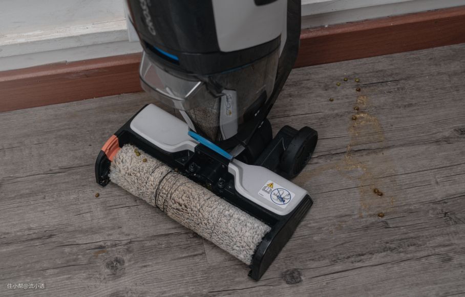 相比必胜,米博V6-H清洁效果不错,起码能把地面肉眼可见的湿垃圾都清洁掉。不过需要多走几趟,等吸污口把液体都吸走。
