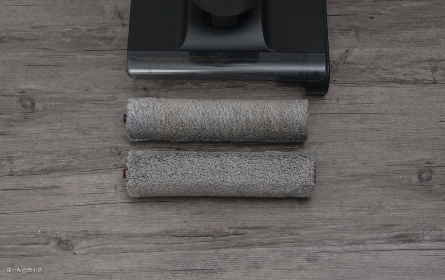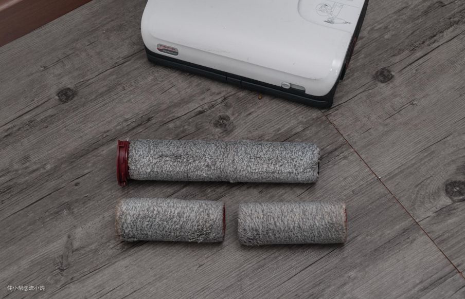 它是三滚刷设计,处理水渍表现真的不错,自清洁表现我觉得也是比较满意的,并且它自带清洁液储存盒,添加一次能使用很久,机器会自动混合清水跟清洁液的比例,还会根据地面脏污程度加量,还是比较只能的。