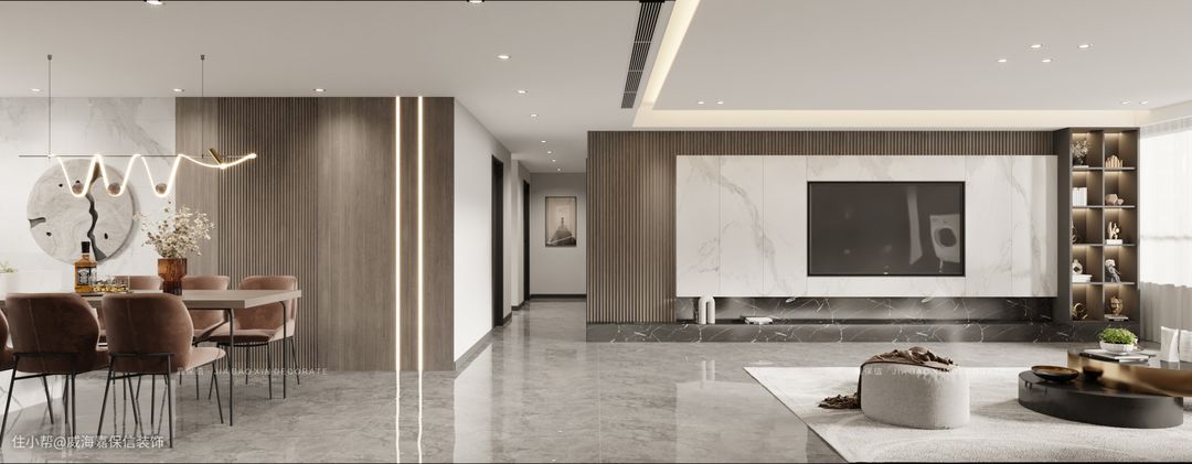 威海装修| 186㎡大平层现代风格装修,简洁大气有质感