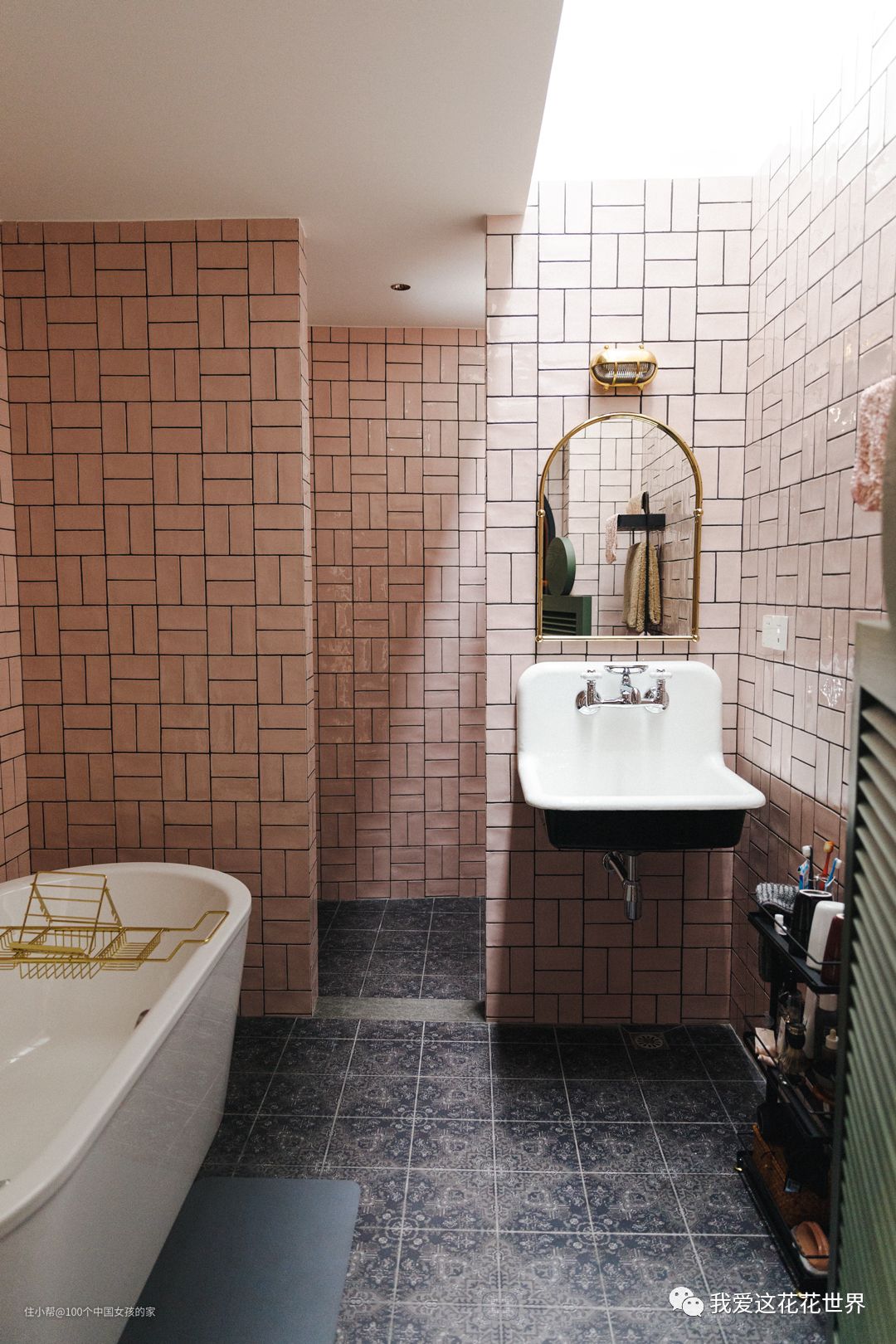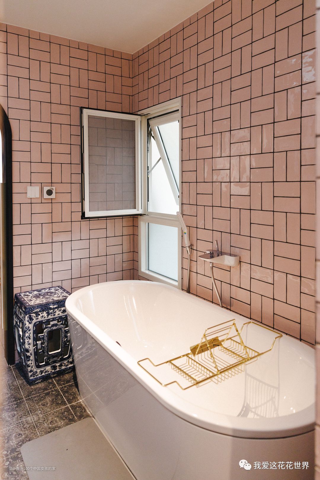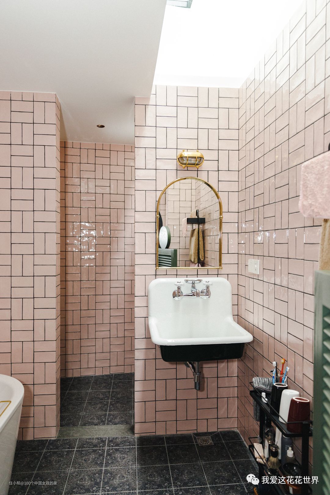 最妙的是,屋里藏了很多妙趣横生的空间,这里有个粉色的梦幻洗手间,开了扇敞亮的天窗,可以站在阳光下沐浴,也太浪漫了!