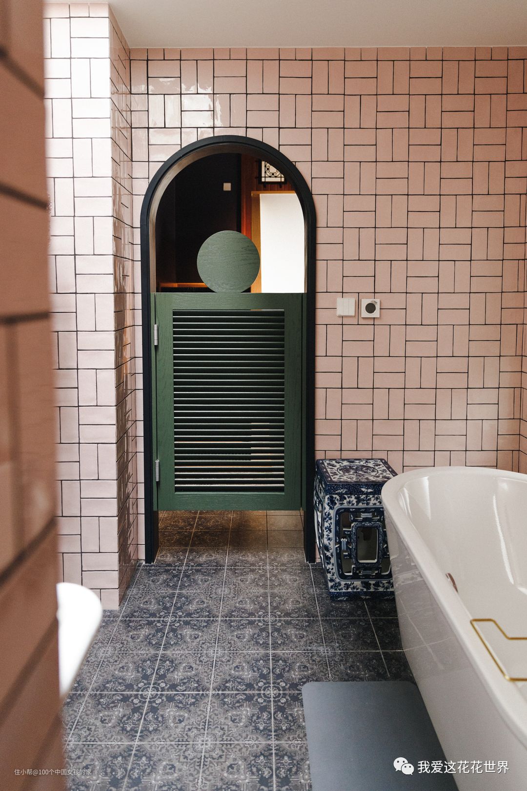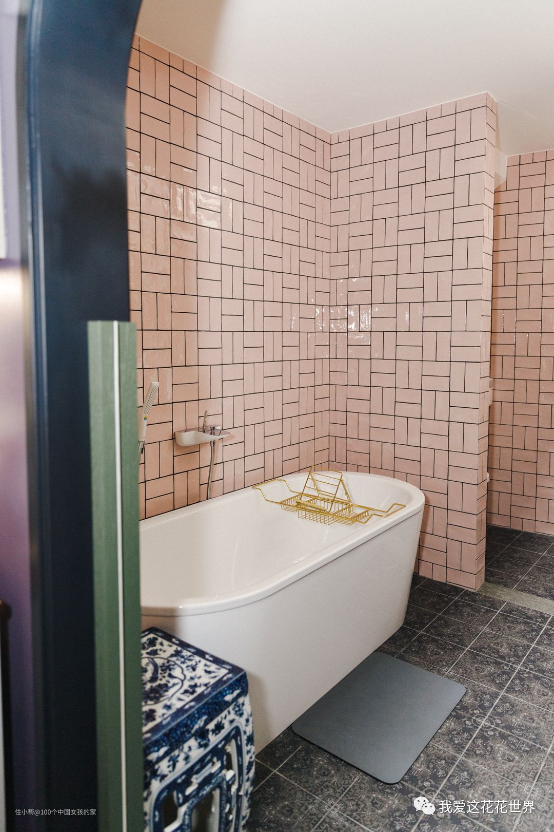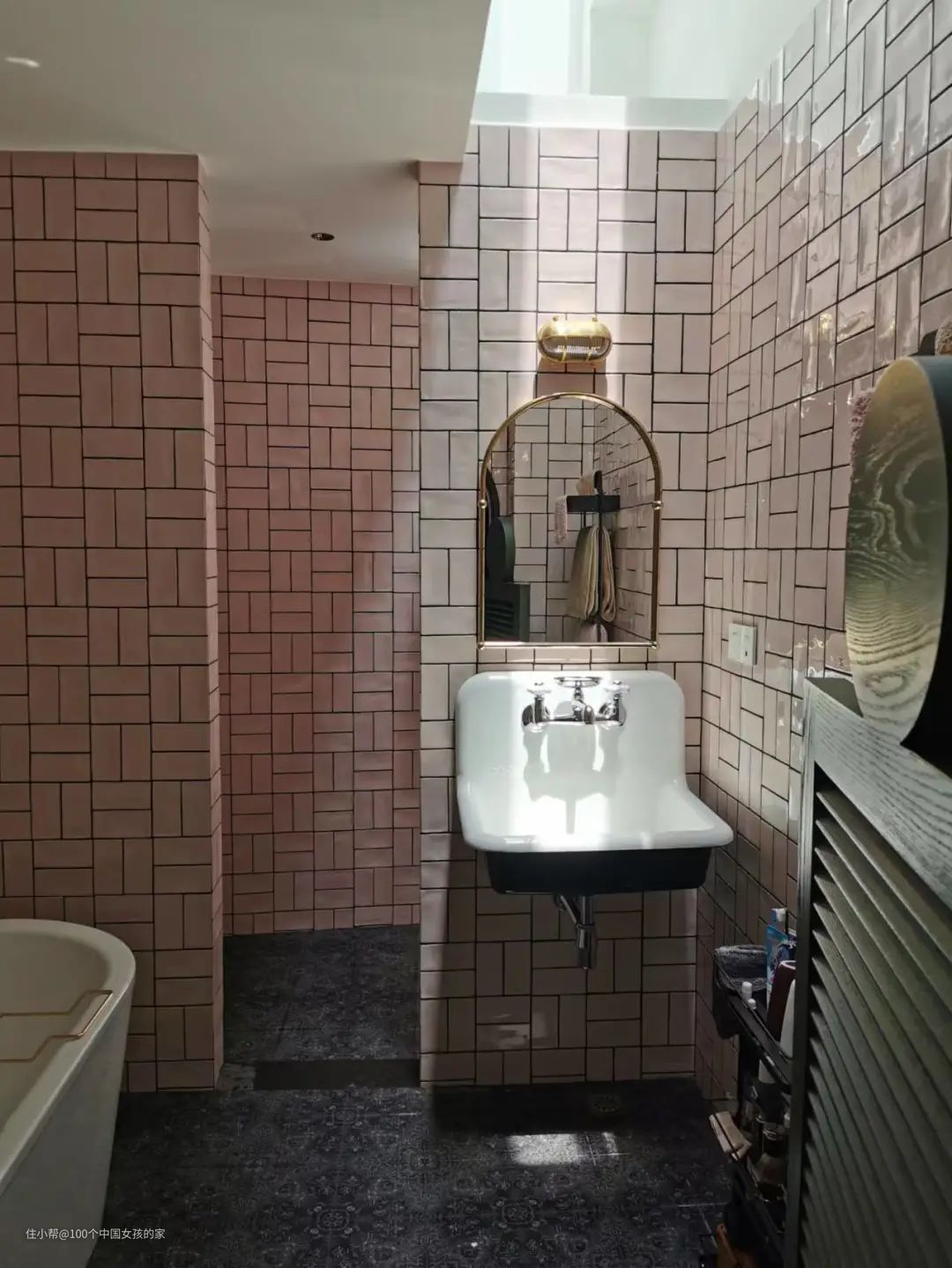 最妙的是,屋里藏了很多妙趣横生的空间,这里有个粉色的梦幻洗手间,开了扇敞亮的天窗,可以站在阳光下沐浴,也太浪漫了!