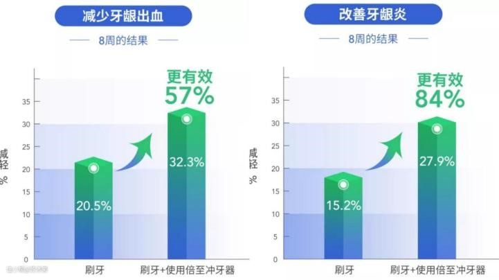 据华西口腔医院实验研究,倍至这款冲牙器牙菌清除率高达99.8%,而且坚持八周在改善牙龈出血和牙龈炎方面,可以分别有效提升84%和55%。