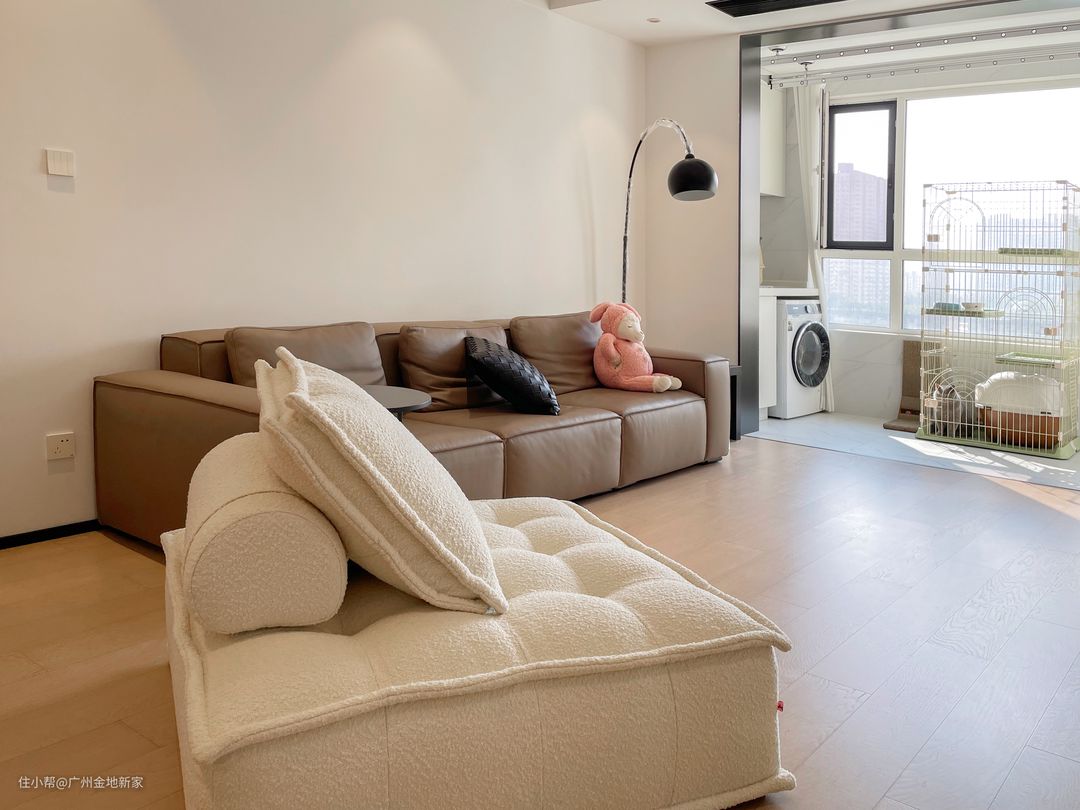 【屋主需求自述】:1、目前是一个人居住,养了一只3岁的蓝猫,得有个放窝的地方,窝比较长高,希望能晒到太阳2、留个次卧,没准以后会当婚房用3、便于清洁和打扫4、足够的收纳空间,也要好打扫的那种,不要有太多拿取步骤的设计,简简单单最好5、会有当婚房的可能,日后可能还需要再重新翻新,所以尽量不要有太固定死板的设计6、采光要好,简单干净的设计但希望是个有温度的家,不希望是冷冰冰的色调了解屋主的需求之后,决定以白色为主调去对新家进行设计,用部分留白的方式以及冷暖色调的比例 对硬软装进行合理搭配,巧用灯源以及材料的质地,去给极简风格的家带来干净又不失立体美感的新家。