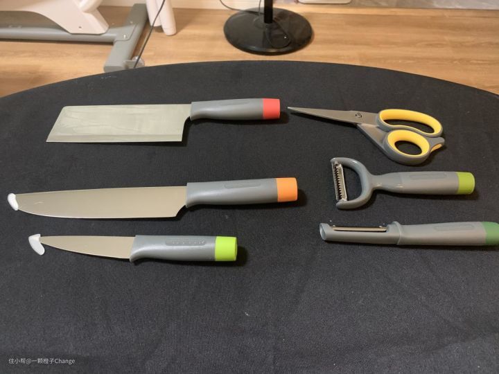 最后的则是蔬果刀了。为了便于削水果皮,它更加小巧。
