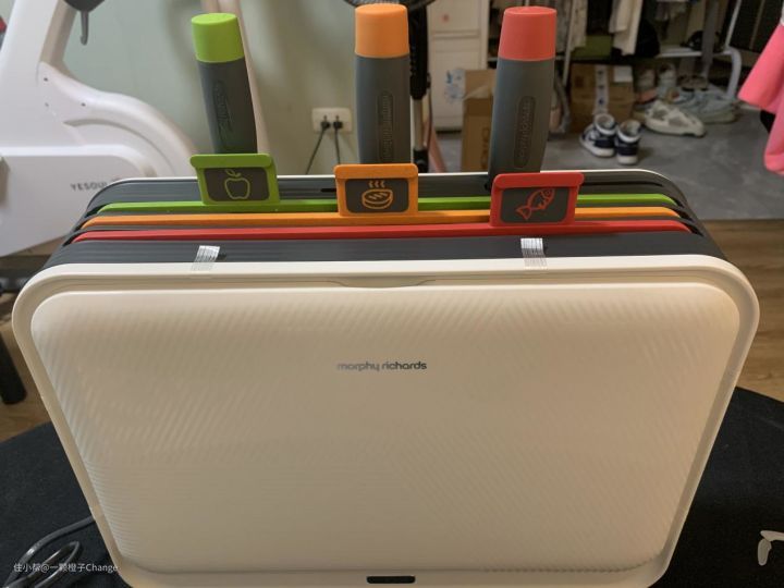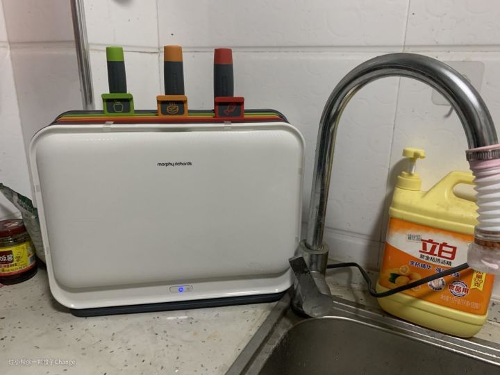 因为考虑到健康卫生问题,肯定要分开买砧板,我就在网上看了很多不同的砧板,如果买3块不同的砧板的话,收纳真的非常麻烦。然后我发现了摩飞这款三代消毒刀架,它不光带有三块区分功能后的砧板,牛的是它还带有紫外线自动消毒和烘干功能。