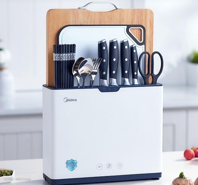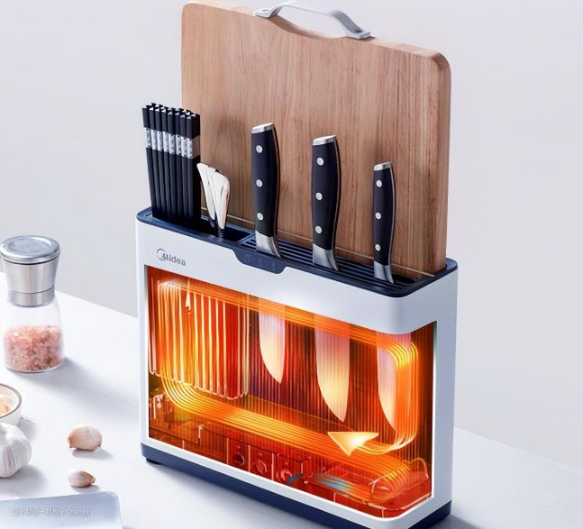 现在有一种智能消毒刀架既可以消毒又可以收纳刀具砧板,被很多用户所喜爱。