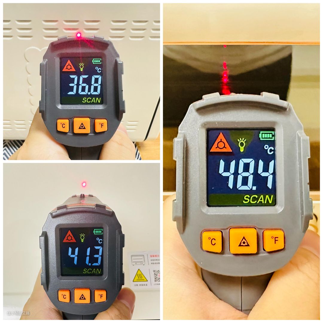 ▼用红外温感枪测试设定200度预热之后的烤箱,测试结果是非常精准的200度