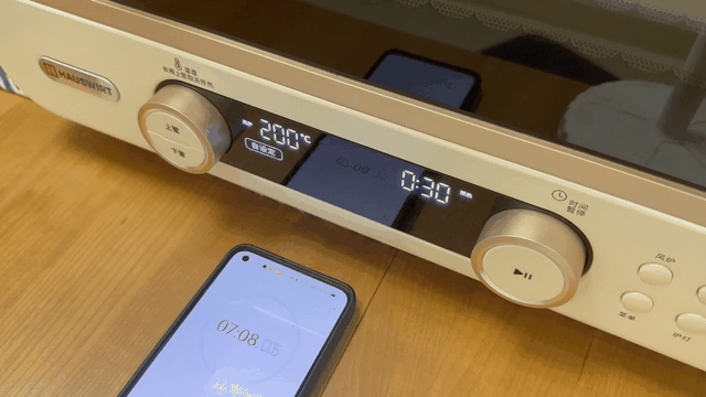 首先我们来测试海氏i7 Pro风炉烤箱的平炉模式热效率。打开烤箱,选择平炉模式,上下管设置200℃后开始计时测试。